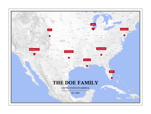 Personalized family posters and prints are a unique way to honor the people who have shaped your life, offering a visual representation of the love and connections that span generations. With MixPlaces, you can create a custom family poster that tells your family's story.