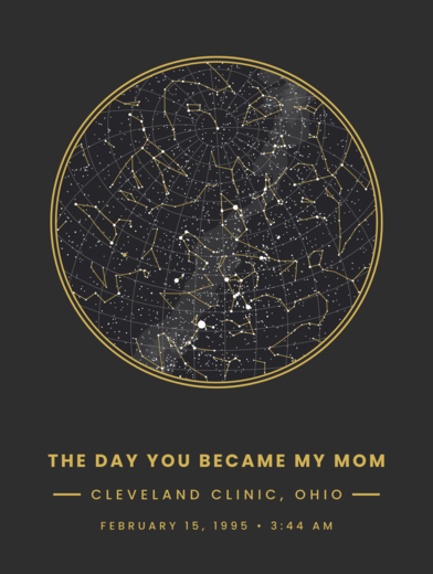 • Newborn Posters: Celebrate the arrival of a new family member with a beautiful custom star map poster, capturing the unique celestial arrangement on the day they were born. This personalized keepsake will be cherished for years to come and can be customized with the baby's name and birth details.