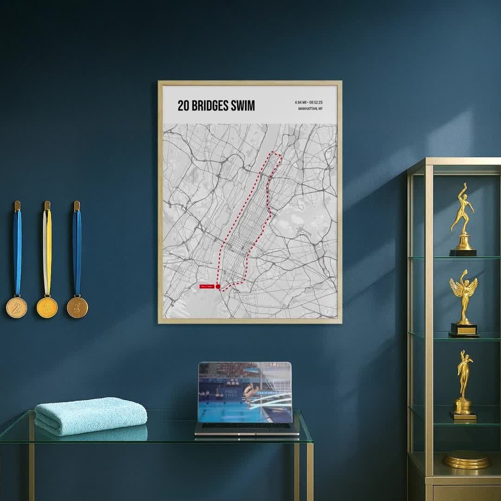 Our 20 Bridges Swim Poster - Route Map is available in the always ideal Portrait orientation, or it can be fully customized to your liking. Perfect for any space, this work comes in various size options and finishing materials. In fact, your 20 Bridges Swim Poster - Route Map will have a classic, gallery-quality look when you choose from Matte Poster, Metal Frame, Canvas, Wood Print, and more. Don't hesitate! Give your walls the makeover they deserve!