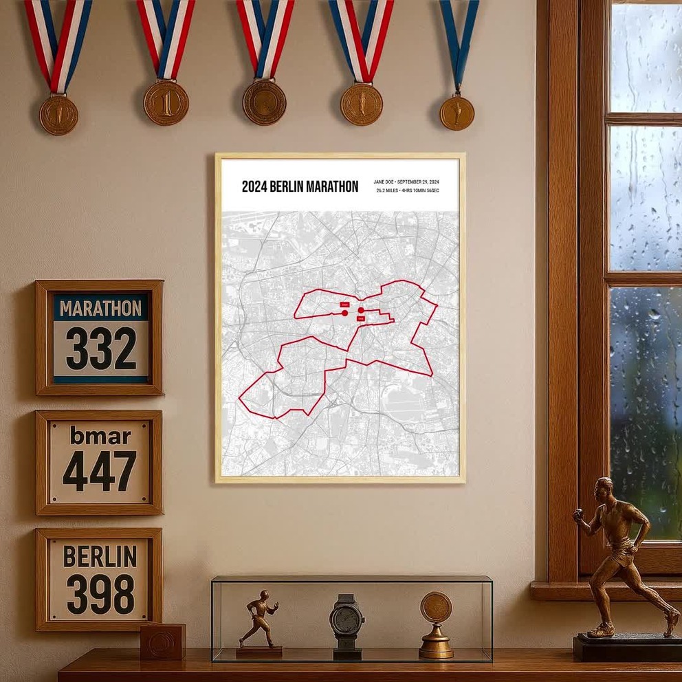 Our 2024 Berlin Marathon Poster - Route Map is available in the always ideal Portrait orientation, or it can be fully customized to your liking. Perfect for any space, this work comes in various size options and finishing materials. In fact, your 2024 Berlin Marathon Poster - Route Map will have a classic, gallery-quality look when you choose from Matte Poster, Metal Frame, Canvas, Wood Print, and more. Don't hesitate! Give your walls the makeover they deserve!