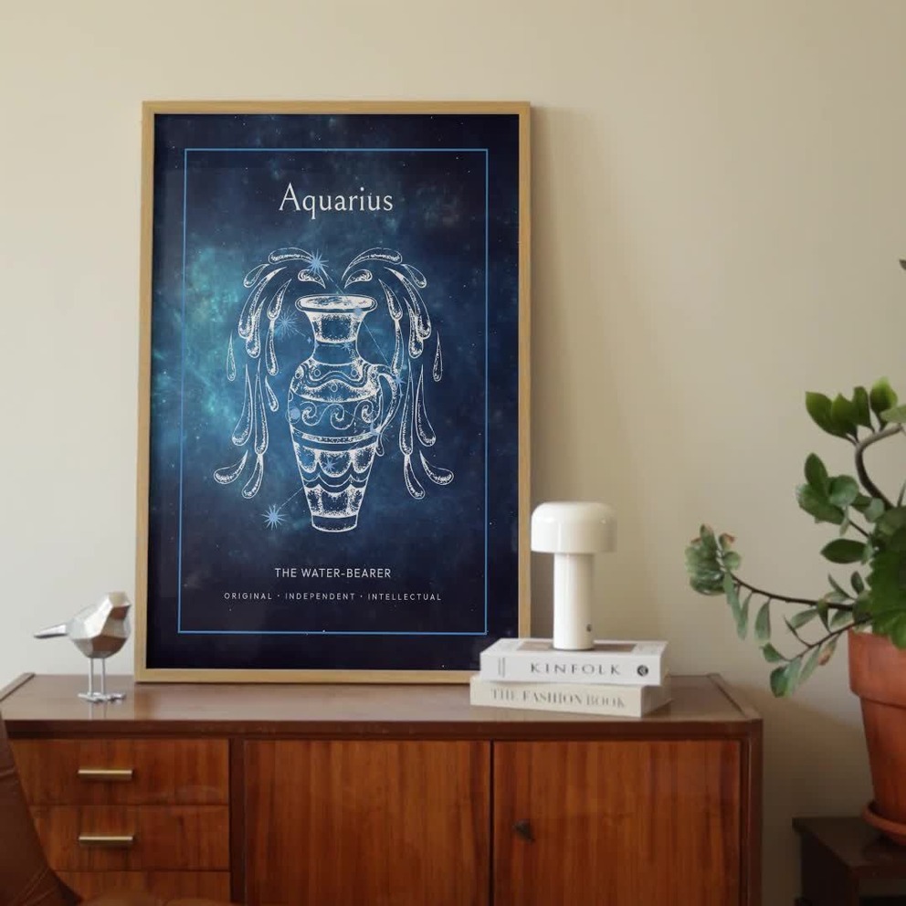 Our Aquarius in Embellished Outline Print - Custom Zodiac Sign Poster is available in the always ideal Portrait orientation, or it can be fully customized to your liking. Perfect for any space, this work comes in various size options and finishing materials. In fact, your Aquarius in Embellished Outline Print - Custom Zodiac Sign Poster will have a classic, gallery-quality look when you choose from Matte Poster, Metal Frame, Canvas, Wood Print, and more. Don't hesitate! Give your walls the makeover they deserve!