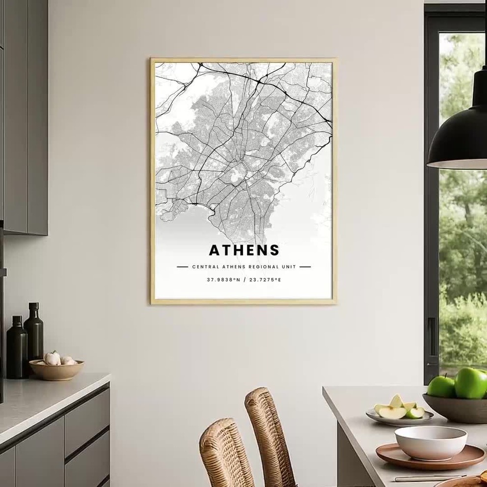 Our Athens in Light Poster - Street Map is available in the always ideal Portrait orientation, or it can be fully customized to your liking. Perfect for any space, this work comes in various size options and finishing materials. In fact, your Athens in Light Poster - Street Map will have a classic, gallery-quality look when you choose from Matte Poster, Metal Frame, Canvas, Wood Print, and more. Don't hesitate! Give your walls the makeover they deserve!