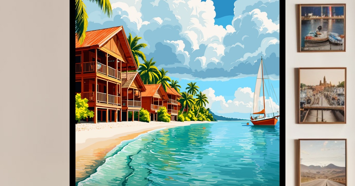 Our Bocas del Toro Travel Print - Vintage Travel Art Poster is available in the always ideal Portrait orientation, or it can be fully customized to your liking. Perfect for any space, this work comes in various size options and finishing materials. In fact, your Bocas del Toro Travel Print - Vintage Travel Art Poster will have a classic, gallery-quality look when you choose from Matte Poster, Metal Frame, Canvas, Wood Print, and more. Don't hesitate! Give your walls the makeover they deserve!