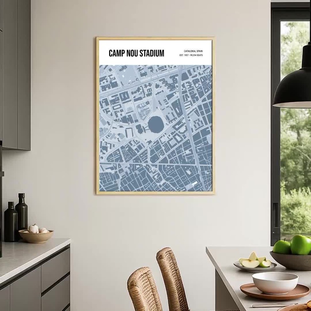 Our Camp Nou Stadium Poster - Street Map is available in the always ideal Portrait orientation, or it can be fully customized to your liking. Perfect for any space, this work comes in various size options and finishing materials. In fact, your Camp Nou Stadium Poster - Street Map will have a classic, gallery-quality look when you choose from Matte Poster, Metal Frame, Canvas, Wood Print, and more. Don't hesitate! Give your walls the makeover they deserve!