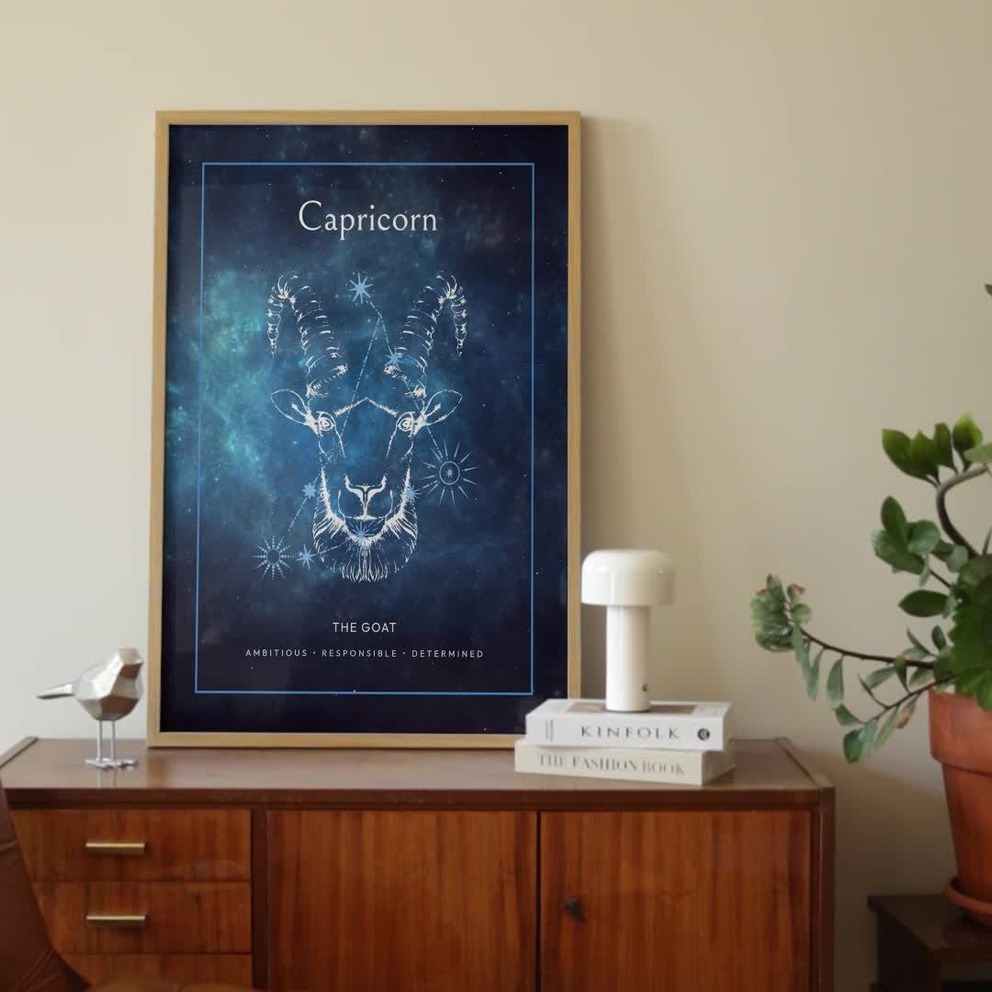 Our Capricorn in Embellished Outline Print - Custom Zodiac Sign Poster is available in the always ideal Portrait orientation, or it can be fully customized to your liking. Perfect for any space, this work comes in various size options and finishing materials. In fact, your Capricorn in Embellished Outline Print - Custom Zodiac Sign Poster will have a classic, gallery-quality look when you choose from Matte Poster, Metal Frame, Canvas, Wood Print, and more. Don't hesitate! Give your walls the makeover they deserve!