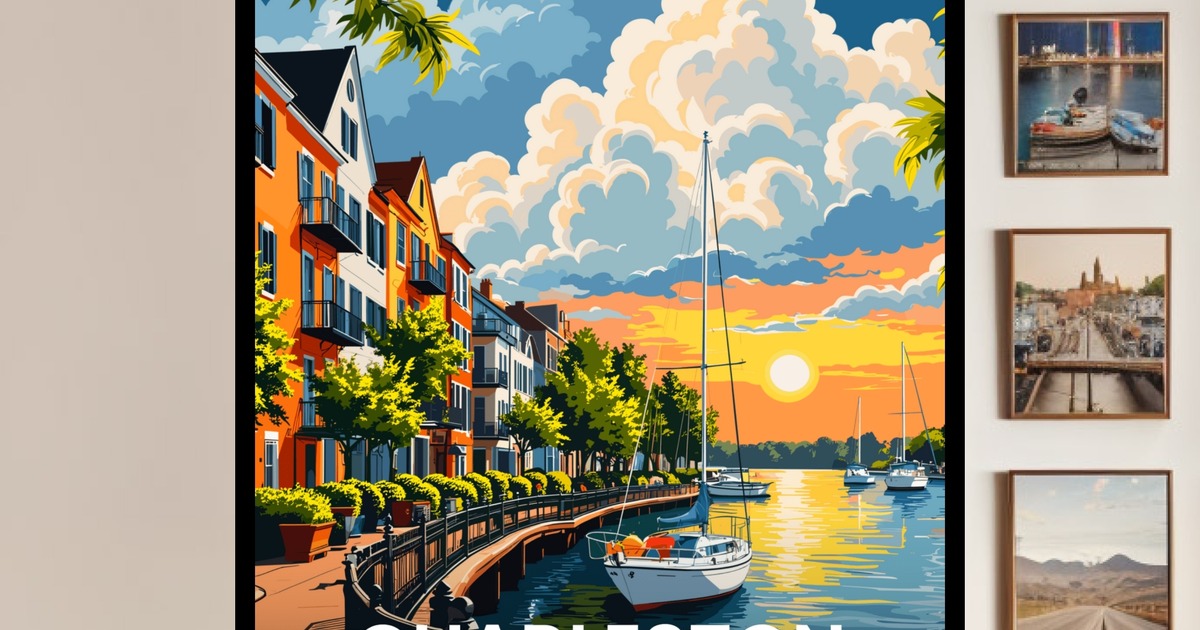 Our Charleston Travel Print - Vintage Travel Art Poster is available in the always ideal Portrait orientation, or it can be fully customized to your liking. Perfect for any space, this work comes in various size options and finishing materials. In fact, your Charleston Travel Print - Vintage Travel Art Poster will have a classic, gallery-quality look when you choose from Matte Poster, Metal Frame, Canvas, Wood Print, and more. Don't hesitate! Give your walls the makeover they deserve!