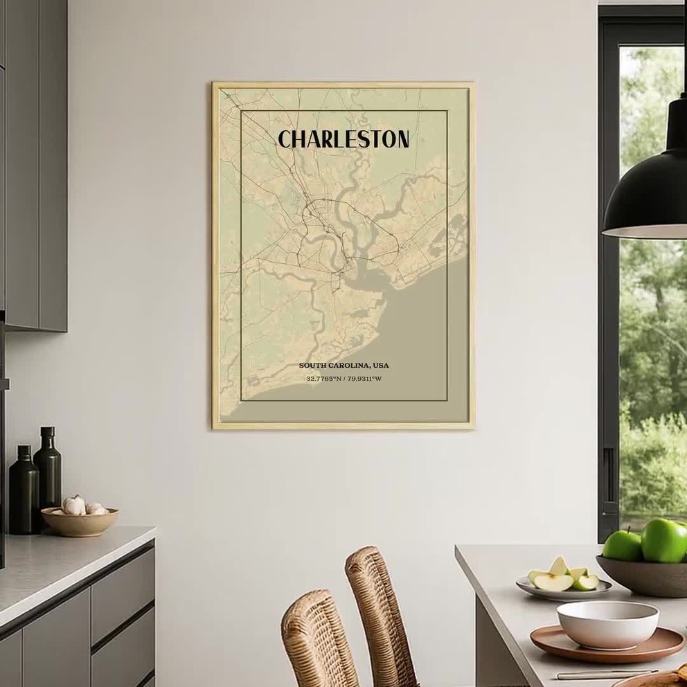 Our Charleston in Vintage Poster - Street Map is available in the always ideal Portrait orientation, or it can be fully customized to your liking. Perfect for any space, this work comes in various size options and finishing materials. In fact, your Charleston in Vintage Poster - Street Map will have a classic, gallery-quality look when you choose from Matte Poster, Metal Frame, Canvas, Wood Print, and more. Don't hesitate! Give your walls the makeover they deserve!