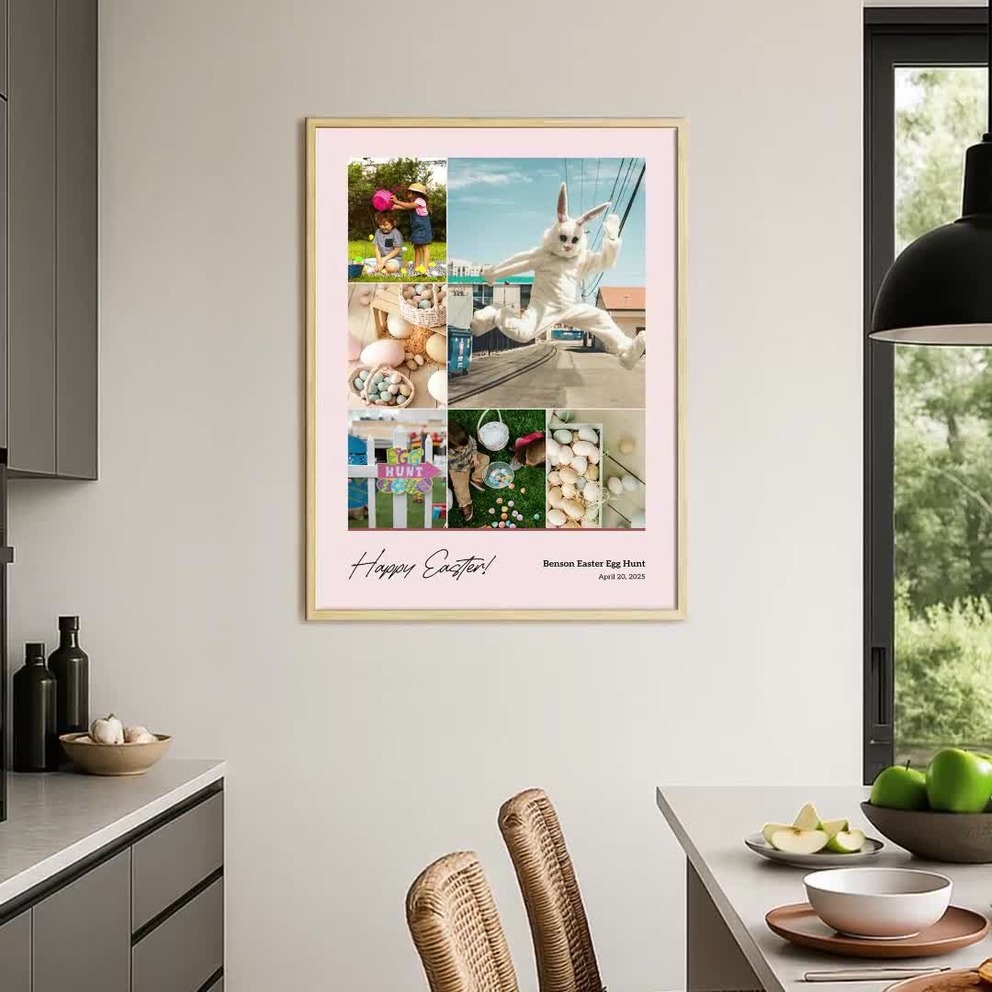 Our Easter Egg Hunt Poster - Photo Collage Print is available in the always ideal Portrait orientation, or it can be fully customized to your liking. Perfect for any space, this work comes in various size options and finishing materials. In fact, your Easter Egg Hunt Poster - Photo Collage Print will have a classic, gallery-quality look when you choose from Matte Poster, Metal Frame, Canvas, Wood Print, and more. Don't hesitate! Give your walls the makeover they deserve!