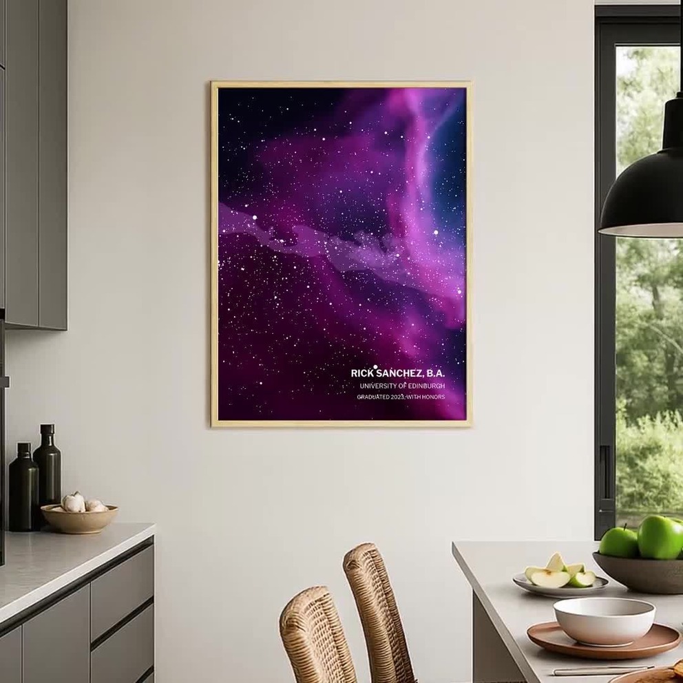 Our Graduation Poster in Nebula - Celestial Map is available in the always ideal Portrait orientation, or it can be fully customized to your liking. Perfect for any space, this work comes in various size options and finishing materials. In fact, your Graduation Poster in Nebula - Celestial Map will have a classic, gallery-quality look when you choose from Matte Poster, Metal Frame, Canvas, Wood Print, and more. Don't hesitate! Give your walls the makeover they deserve!