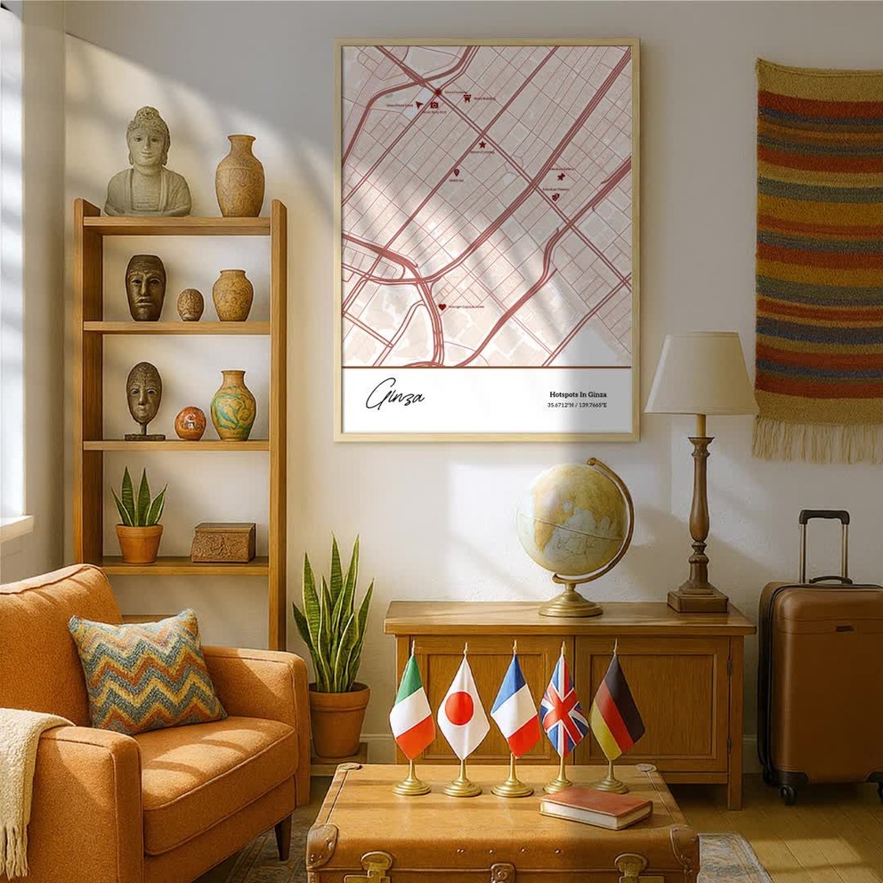 Our Hotspots in Ginza Poster - Street Map is available in the always ideal Portrait orientation, or it can be fully customized to your liking. Perfect for any space, this work comes in various size options and finishing materials. In fact, your Hotspots in Ginza Poster - Street Map will have a classic, gallery-quality look when you choose from Matte Poster, Metal Frame, Canvas, Wood Print, and more. Don't hesitate! Give your walls the makeover they deserve!