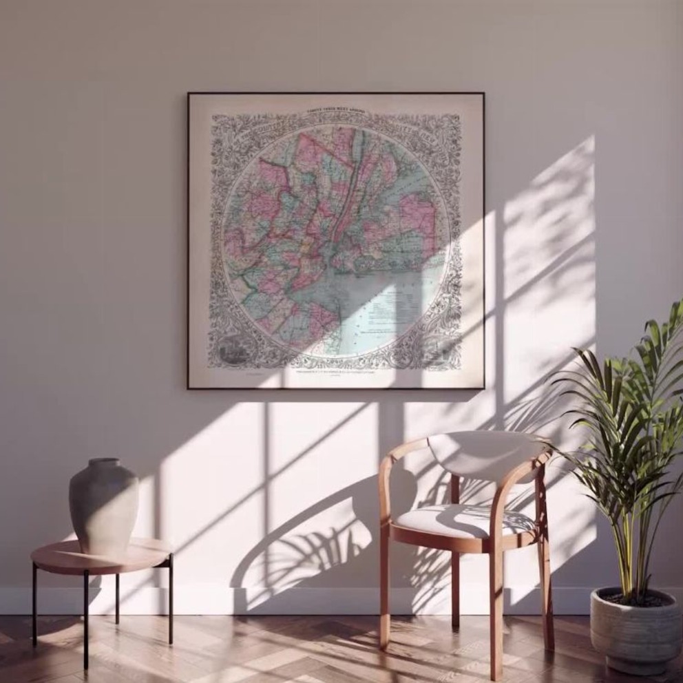Our J.H. Colton - Map of New York City & Vicinity (1879) is available in the always ideal Square orientation, or it can be fully customized to your liking. Perfect for any space, this work comes in various size options and finishing materials. In fact, your J.H. Colton - Map of New York City & Vicinity (1879) will have a classic, gallery-quality look when you choose from Matte Poster, Metal Frame, Canvas, Wood Print, and more. Don't hesitate! Give your walls the makeover they deserve!