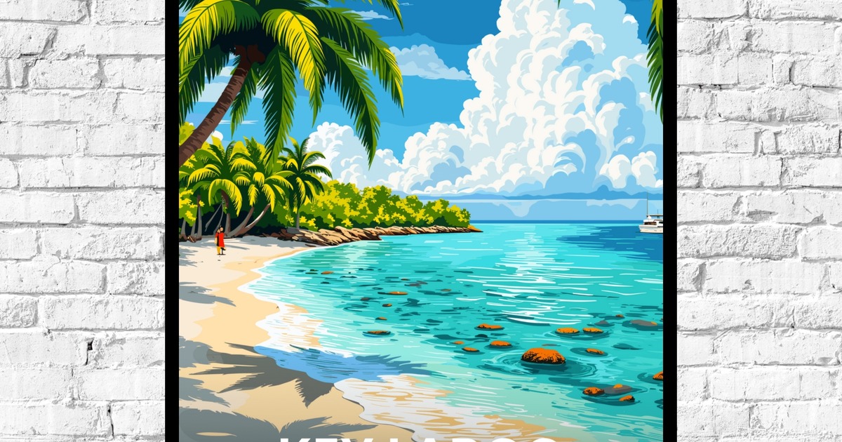 Add a touch of class to your home or office with a Key Largo Travel Print - Vintage Travel Art Poster, and transform beautiful artwork into a conversation starter in any space. With a Key Largo Travel Print - Vintage Travel Art Poster from our incredible Vintage Island Travel Art collection, you're sure to turn heads. As part of our best-selling line of Travel Art Prints, this piece is a favorite among Travel enthusiasts and an excellent choice for Gifts for Frequent Travelers or Gifts for Nature & Outdoor Lovers.