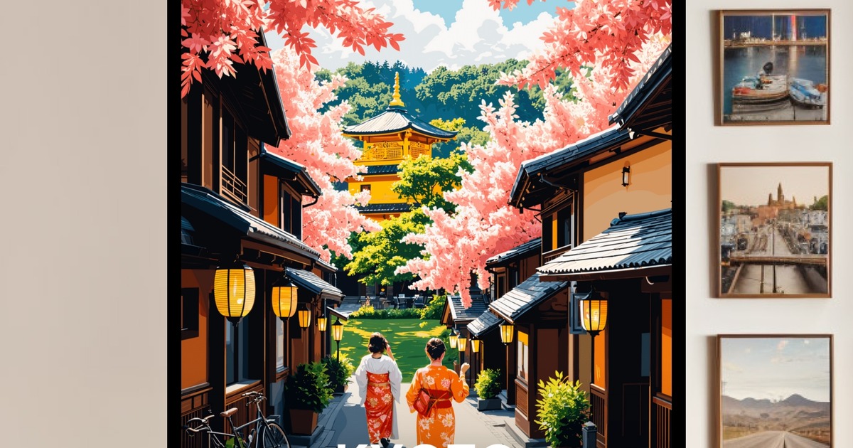 Our Kyoto Travel Print - Vintage Travel Art Poster is available in the always ideal Portrait orientation, or it can be fully customized to your liking. Perfect for any space, this work comes in various size options and finishing materials. In fact, your Kyoto Travel Print - Vintage Travel Art Poster will have a classic, gallery-quality look when you choose from Matte Poster, Metal Frame, Canvas, Wood Print, and more. Don't hesitate! Give your walls the makeover they deserve!