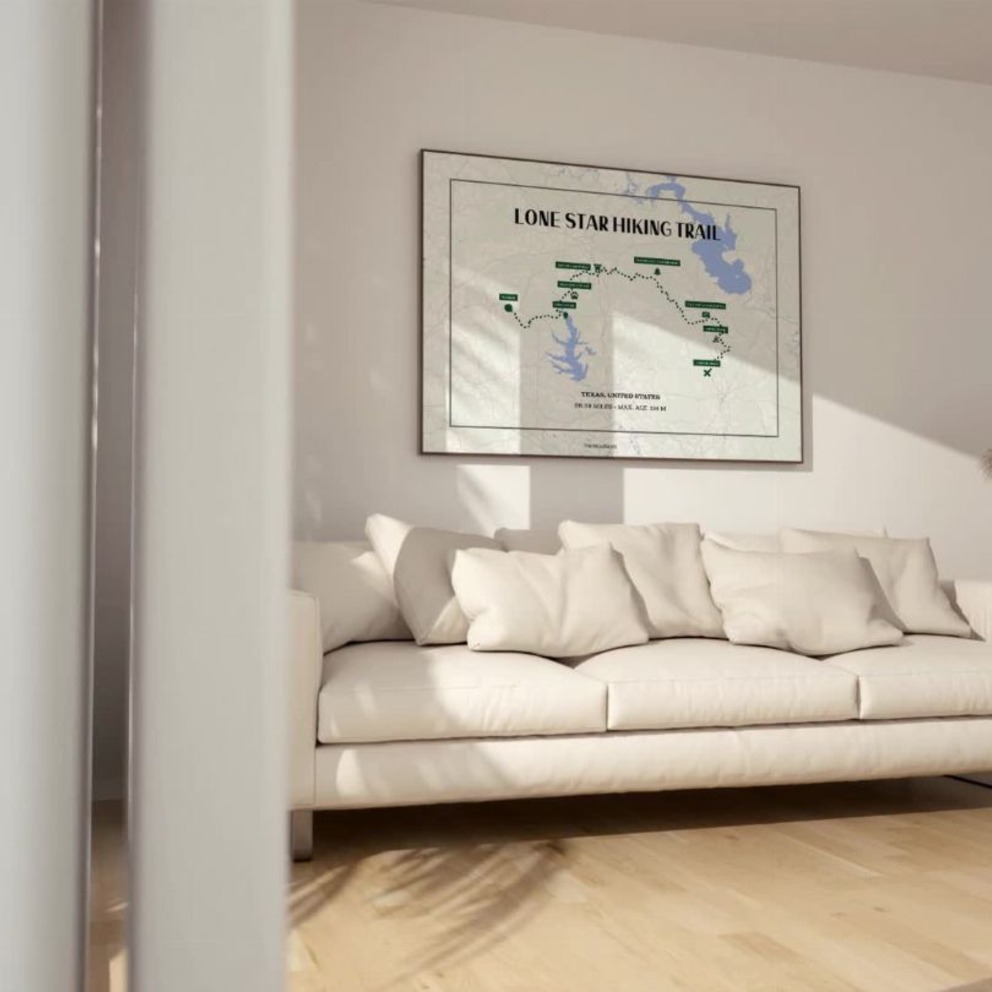 Our Lone Star Trail Hiking Trip Poster - Route Map is available in the always ideal Landscape orientation, or it can be fully customized to your liking. Perfect for any space, this work comes in various size options and finishing materials. In fact, your Lone Star Trail Hiking Trip Poster - Route Map will have a classic, gallery-quality look when you choose from Matte Poster, Metal Frame, Canvas, Wood Print, and more. Don't hesitate! Give your walls the makeover they deserve!