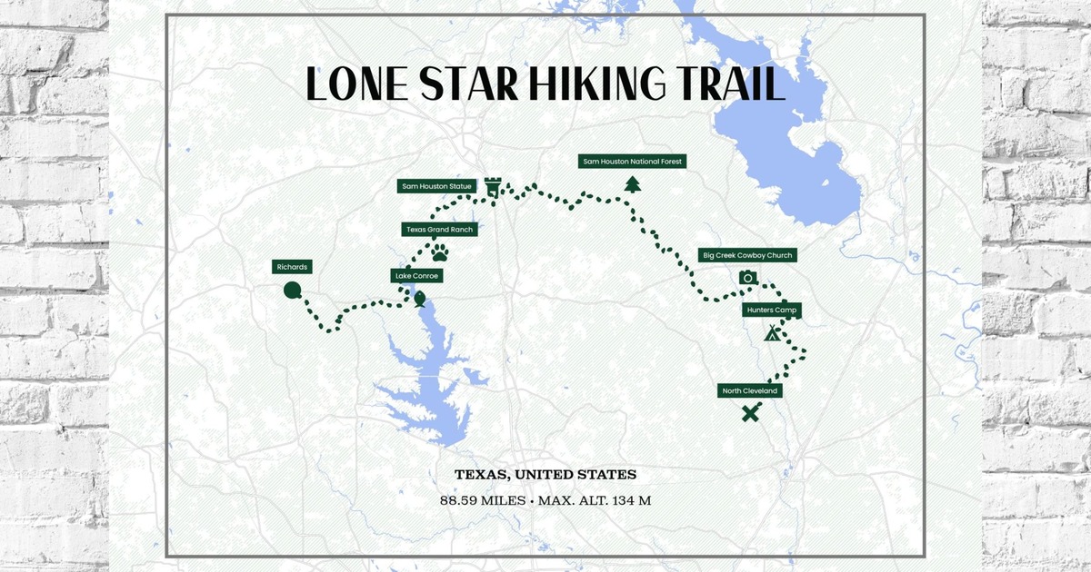 Add a touch of class to your home or office with a Lone Star Trail Hiking Trip Poster - Route Map, and transform beautiful artwork into a conversation starter in any space. With a Lone Star Trail Hiking Trip Poster - Route Map from our incredible Famous Mountain Hikes collection, you're sure to turn heads. As part of our best-selling line of Topographic Map Posters, this piece is a favorite among Nature enthusiasts and an excellent choice for Gifts for Nature & Outdoor Lovers or Gifts for Athletes.