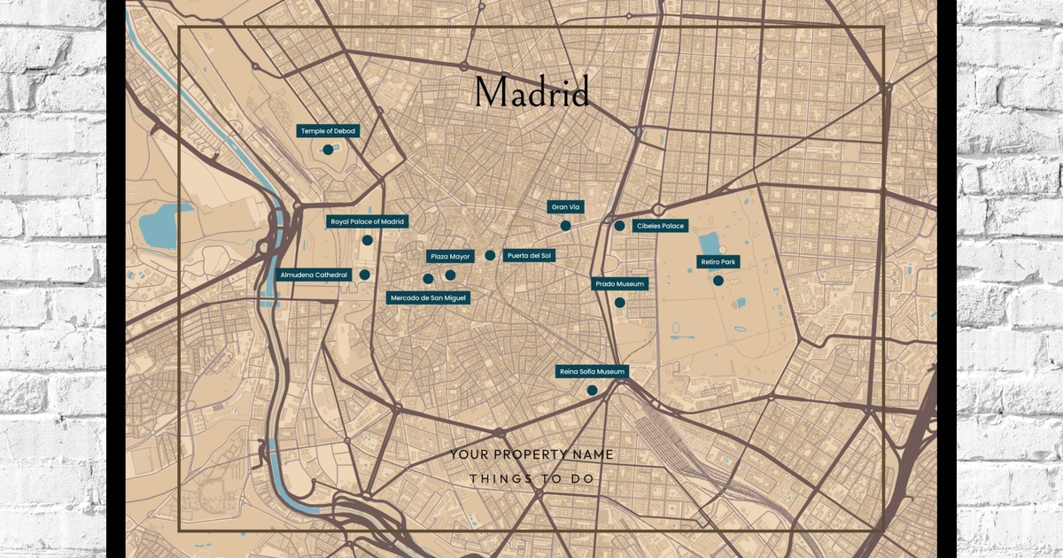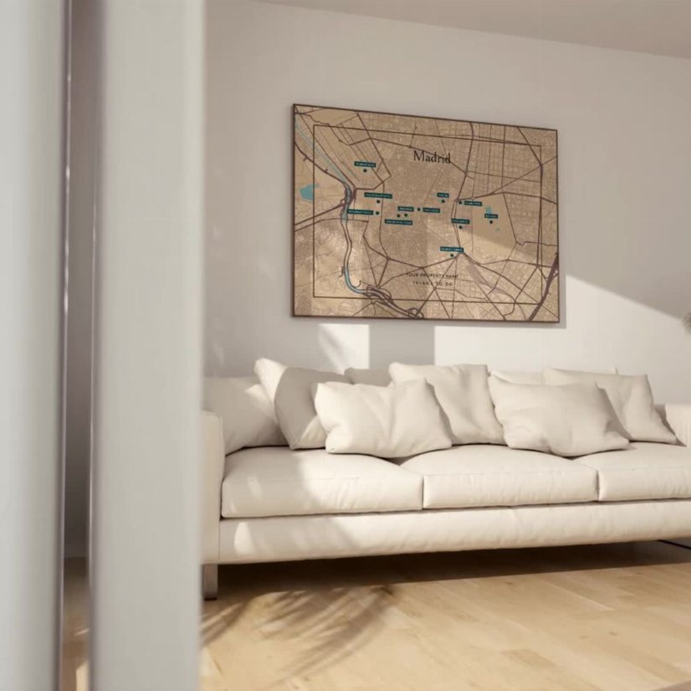 Our Madrid Airbnb Tourist Poster in Road Trip - Street Map is available in the always ideal Landscape orientation, or it can be fully customized to your liking. Perfect for any space, this work comes in various size options and finishing materials. In fact, your Madrid Airbnb Tourist Poster in Road Trip - Street Map will have a classic, gallery-quality look when you choose from Matte Poster, Metal Frame, Canvas, Wood Print, and more. Don't hesitate! Give your walls the makeover they deserve!