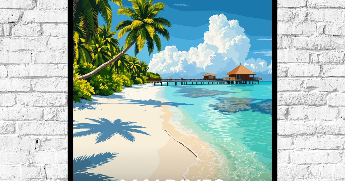 Our Maldives Travel Print - Vintage Travel Art Poster is available in the always ideal Portrait orientation, or it can be fully customized to your liking. Perfect for any space, this work comes in various size options and finishing materials. In fact, your Maldives Travel Print - Vintage Travel Art Poster will have a classic, gallery-quality look when you choose from Matte Poster, Metal Frame, Canvas, Wood Print, and more. Don't hesitate! Give your walls the makeover they deserve!