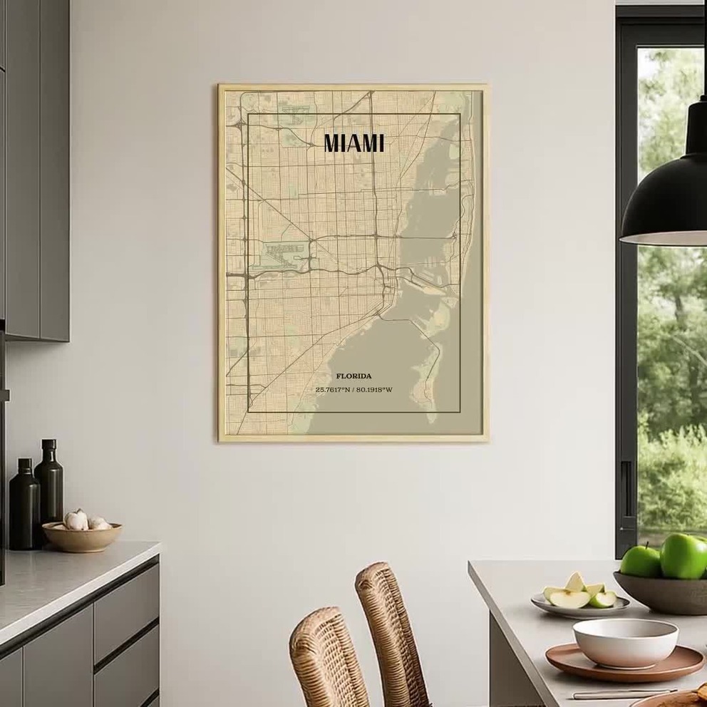 Our Miami in Vintage Poster - Street Map is available in the always ideal Portrait orientation, or it can be fully customized to your liking. Perfect for any space, this work comes in various size options and finishing materials. In fact, your Miami in Vintage Poster - Street Map will have a classic, gallery-quality look when you choose from Matte Poster, Metal Frame, Canvas, Wood Print, and more. Don't hesitate! Give your walls the makeover they deserve!