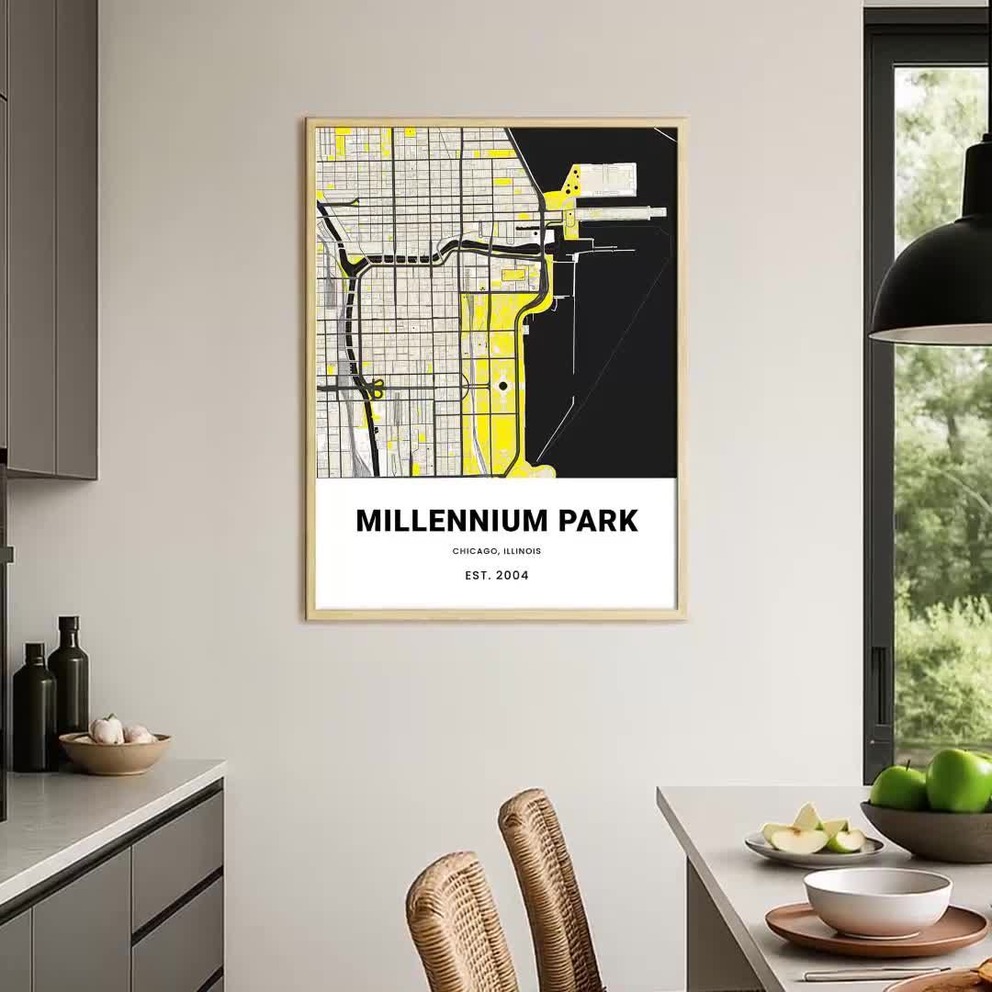 Our Millenium Park Poster - Street Map is available in the always ideal Portrait orientation, or it can be fully customized to your liking. Perfect for any space, this work comes in various size options and finishing materials. In fact, your Millenium Park Poster - Street Map will have a classic, gallery-quality look when you choose from Matte Poster, Metal Frame, Canvas, Wood Print, and more. Don't hesitate! Give your walls the makeover they deserve!