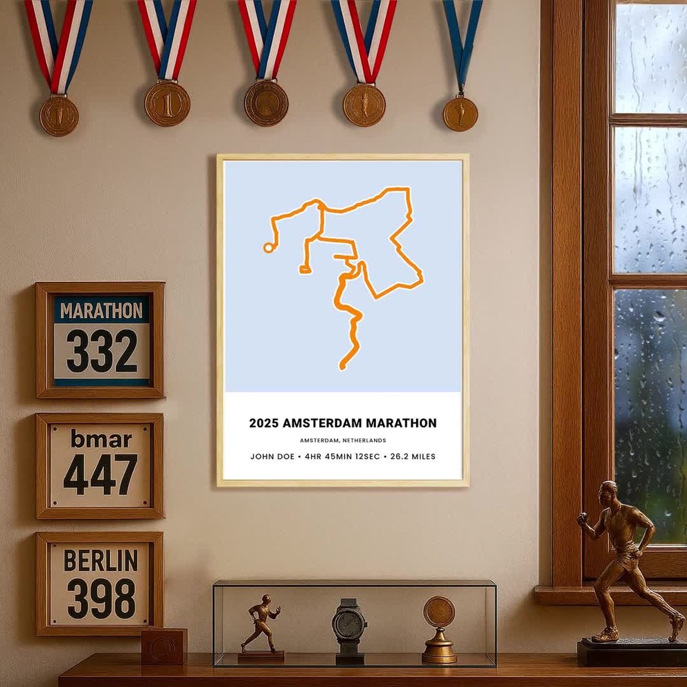 Our Minimalist 2025 Amsterdam Marathon Poster - Route Map is available in the always ideal Portrait orientation, or it can be fully customized to your liking. Perfect for any space, this work comes in various size options and finishing materials. In fact, your Minimalist 2025 Amsterdam Marathon Poster - Route Map will have a classic, gallery-quality look when you choose from Matte Poster, Metal Frame, Canvas, Wood Print, and more. Don't hesitate! Give your walls the makeover they deserve!