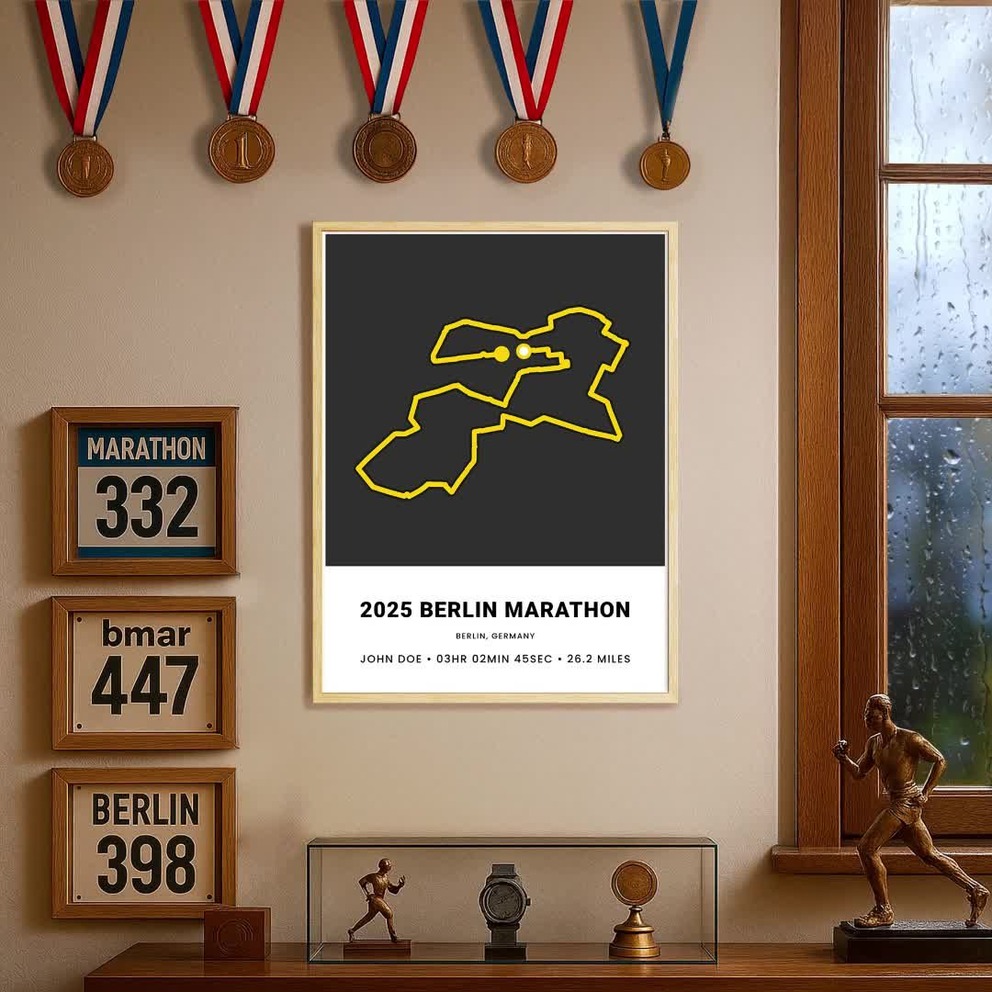 Our Minimalist 2025 Berlin Marathon Poster - Route Map is available in the always ideal Portrait orientation, or it can be fully customized to your liking. Perfect for any space, this work comes in various size options and finishing materials. In fact, your Minimalist 2025 Berlin Marathon Poster - Route Map will have a classic, gallery-quality look when you choose from Matte Poster, Metal Frame, Canvas, Wood Print, and more. Don't hesitate! Give your walls the makeover they deserve!
