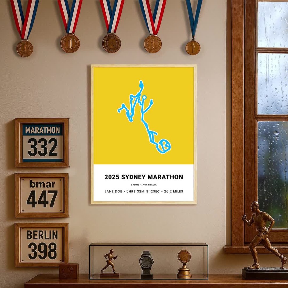 Our Minimalist 2025 Sydney Marathon Poster - Route Map is available in the always ideal Portrait orientation, or it can be fully customized to your liking. Perfect for any space, this work comes in various size options and finishing materials. In fact, your Minimalist 2025 Sydney Marathon Poster - Route Map will have a classic, gallery-quality look when you choose from Matte Poster, Metal Frame, Canvas, Wood Print, and more. Don't hesitate! Give your walls the makeover they deserve!