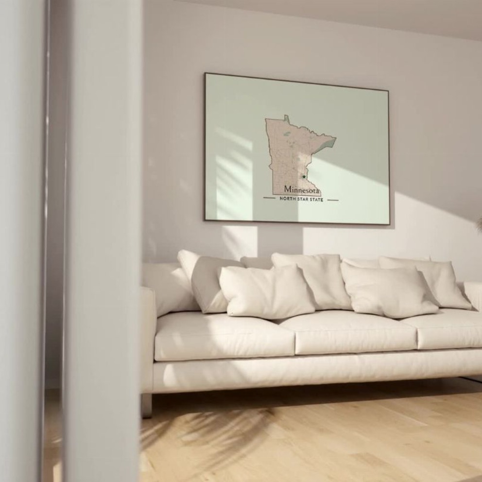 Our Minnesota State Poster - Boundary Map is available in the always ideal Landscape orientation, or it can be fully customized to your liking. Perfect for any space, this work comes in various size options and finishing materials. In fact, your Minnesota State Poster - Boundary Map will have a classic, gallery-quality look when you choose from Matte Poster, Metal Frame, Canvas, Wood Print, and more. Don't hesitate! Give your walls the makeover they deserve!