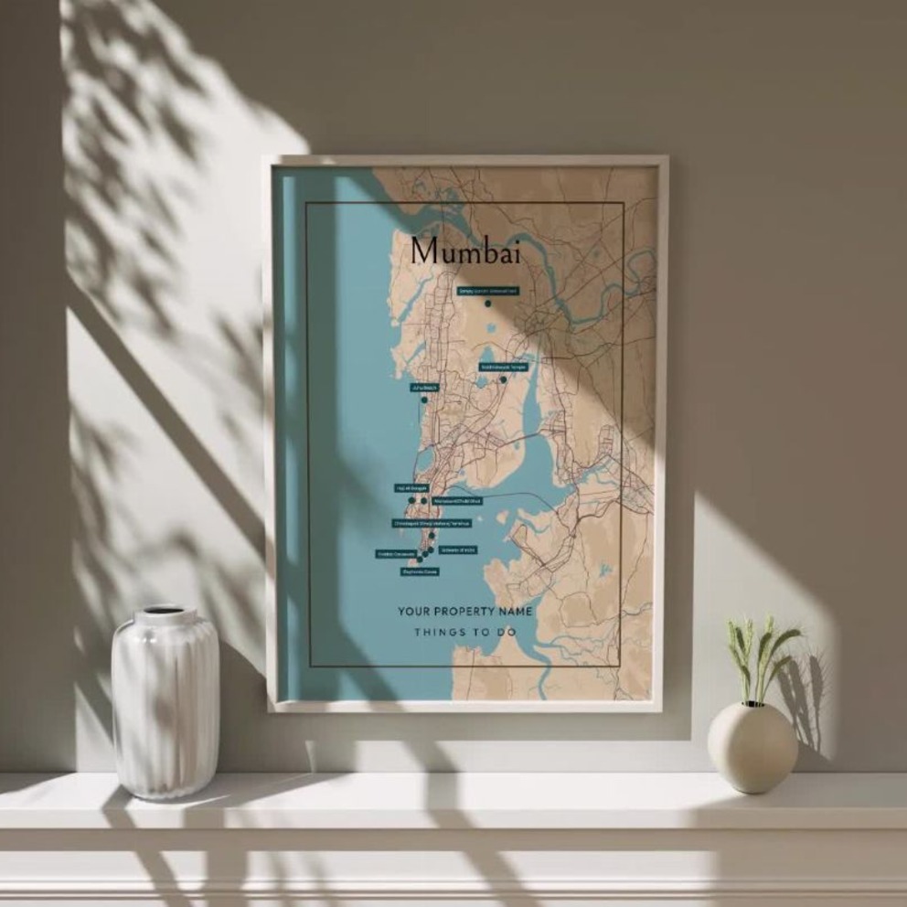 Our Mumbai Airbnb Tourist Poster in Road Trip - Street Map is available in the always ideal Portrait orientation, or it can be fully customized to your liking. Perfect for any space, this work comes in various size options and finishing materials. In fact, your Mumbai Airbnb Tourist Poster in Road Trip - Street Map will have a classic, gallery-quality look when you choose from Matte Poster, Metal Frame, Canvas, Wood Print, and more. Don't hesitate! Give your walls the makeover they deserve!