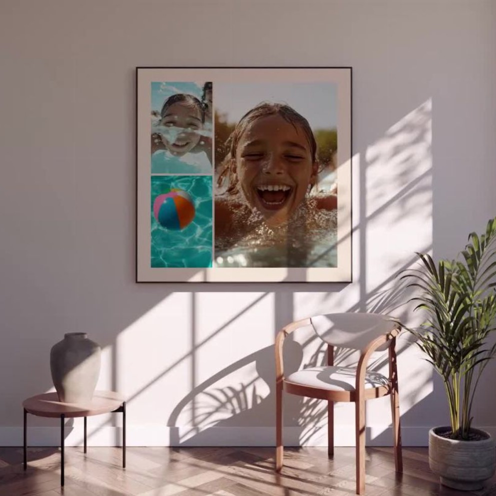 Our Pool Day Poster - Photo Collage Print is available in the always ideal Square orientation, or it can be fully customized to your liking. Perfect for any space, this work comes in various size options and finishing materials. In fact, your Pool Day Poster - Photo Collage Print will have a classic, gallery-quality look when you choose from Matte Poster, Metal Frame, Canvas, Wood Print, and more. Don't hesitate! Give your walls the makeover they deserve!