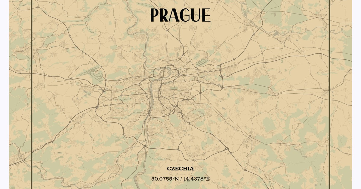 Our Prague in Vintage Poster - Street Map is available in the always ideal Landscape orientation, or it can be fully customized to your liking. Perfect for any space, this work comes in various size options and finishing materials. In fact, your Prague in Vintage Poster - Street Map will have a classic, gallery-quality look when you choose from Matte Poster, Metal Frame, Canvas, Wood Print, and more. Don't hesitate! Give your walls the makeover they deserve!