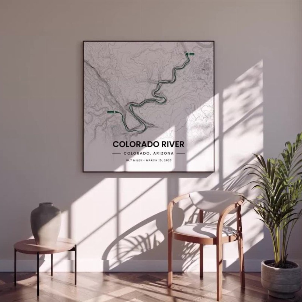 Our Rafting Trip to the Colorado River Poster - Route Map is available in the always ideal Square orientation, or it can be fully customized to your liking. Perfect for any space, this work comes in various size options and finishing materials. In fact, your Rafting Trip to the Colorado River Poster - Route Map will have a classic, gallery-quality look when you choose from Matte Poster, Metal Frame, Canvas, Wood Print, and more. Don't hesitate! Give your walls the makeover they deserve!