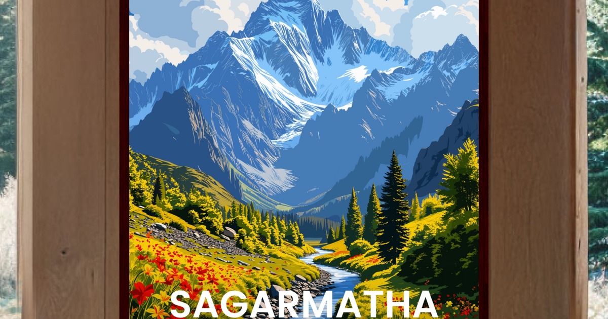 Sagarmatha National Park Travel Print - Vintage Travel Art Poster