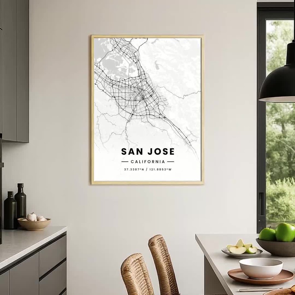 Our San Jose in Light Poster - Street Map is available in the always ideal Portrait orientation, or it can be fully customized to your liking. Perfect for any space, this work comes in various size options and finishing materials. In fact, your San Jose in Light Poster - Street Map will have a classic, gallery-quality look when you choose from Matte Poster, Metal Frame, Canvas, Wood Print, and more. Don't hesitate! Give your walls the makeover they deserve!