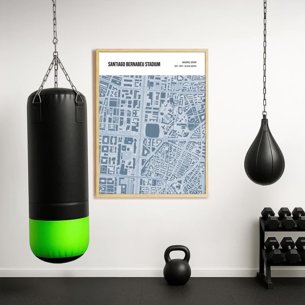 Our Santiago Bernabeu Stadium Poster - Street Map is available in the always ideal Portrait orientation, or it can be fully customized to your liking. Perfect for any space, this work comes in various size options and finishing materials. In fact, your Santiago Bernabeu Stadium Poster - Street Map will have a classic, gallery-quality look when you choose from Matte Poster, Metal Frame, Canvas, Wood Print, and more. Don't hesitate! Give your walls the makeover they deserve!