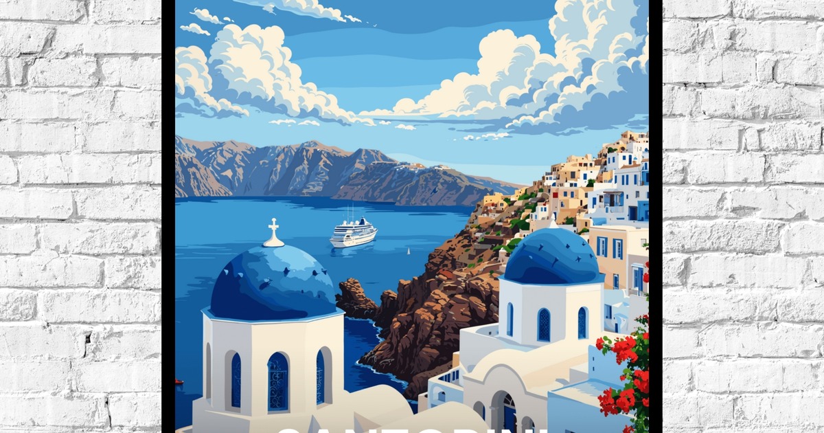 Our Santorini Travel Print - Vintage Travel Art Poster is available in the always ideal Portrait orientation, or it can be fully customized to your liking. Perfect for any space, this work comes in various size options and finishing materials. In fact, your Santorini Travel Print - Vintage Travel Art Poster will have a classic, gallery-quality look when you choose from Matte Poster, Metal Frame, Canvas, Wood Print, and more. Don't hesitate! Give your walls the makeover they deserve!