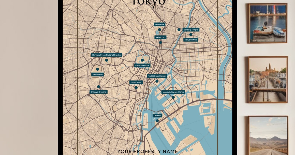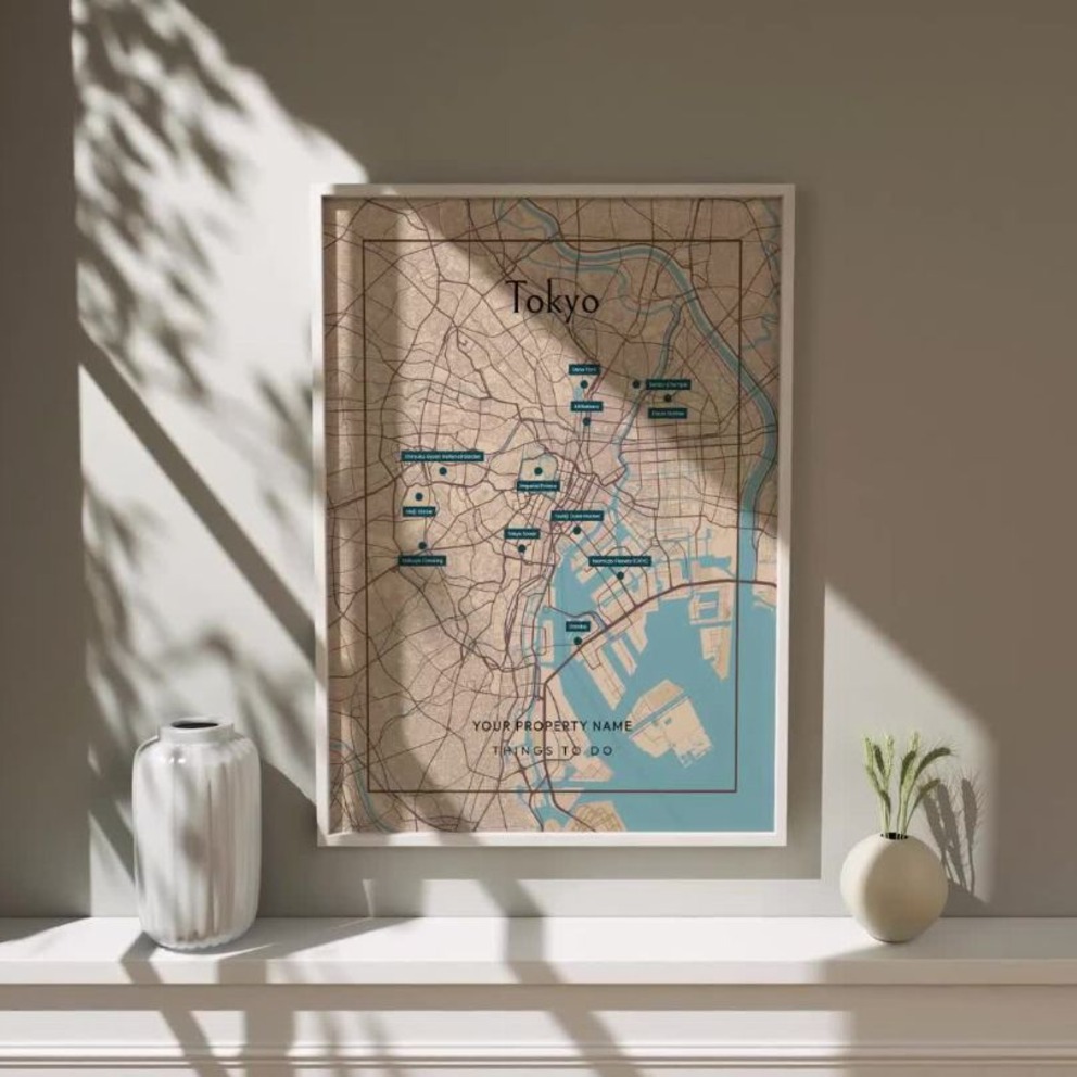 Our Tokyo Airbnb Tourist Poster in Road Trip - Street Map is available in the always ideal Portrait orientation, or it can be fully customized to your liking. Perfect for any space, this work comes in various size options and finishing materials. In fact, your Tokyo Airbnb Tourist Poster in Road Trip - Street Map will have a classic, gallery-quality look when you choose from Matte Poster, Metal Frame, Canvas, Wood Print, and more. Don't hesitate! Give your walls the makeover they deserve!