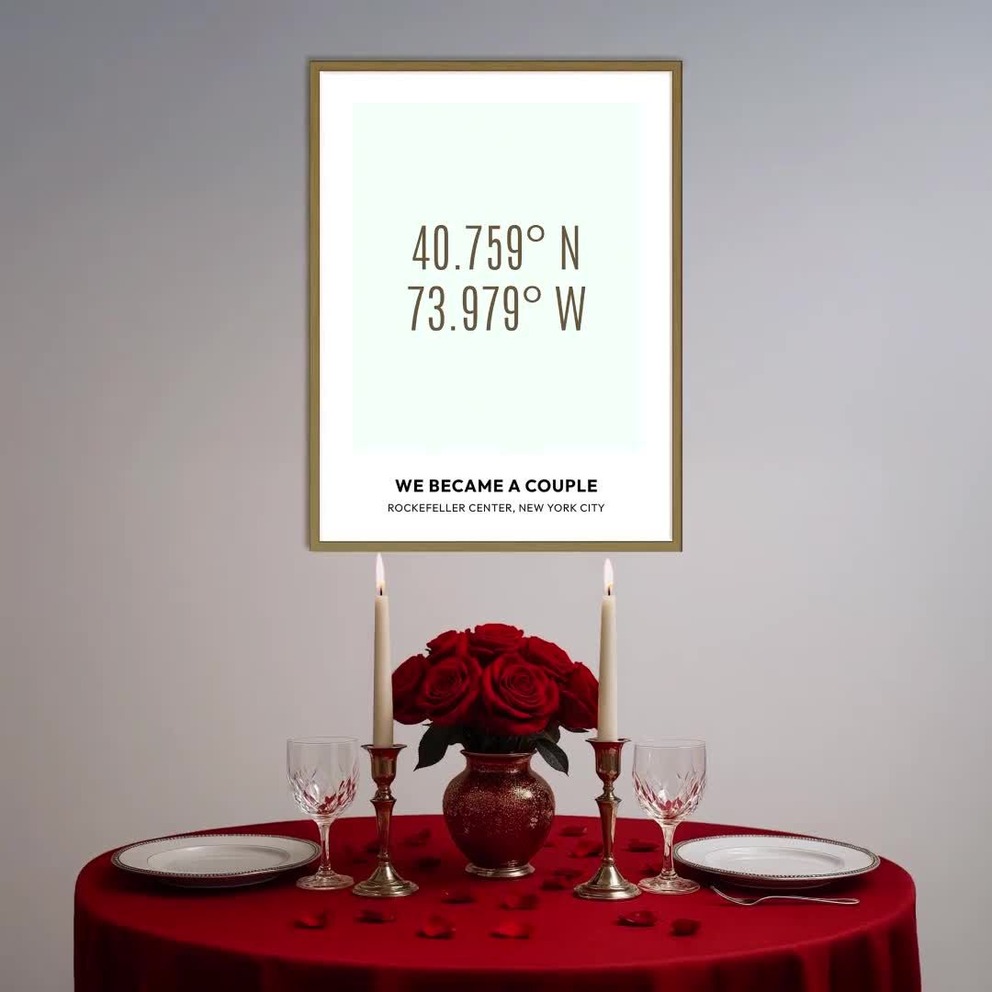 Our Where We Became a Couple Poster - Coordinates is available in the always ideal Portrait orientation, or it can be fully customized to your liking. Perfect for any space, this work comes in various size options and finishing materials. In fact, your Where We Became a Couple Poster - Coordinates will have a classic, gallery-quality look when you choose from Matte Poster, Metal Frame, Canvas, Wood Print, and more. Don't hesitate! Give your walls the makeover they deserve!