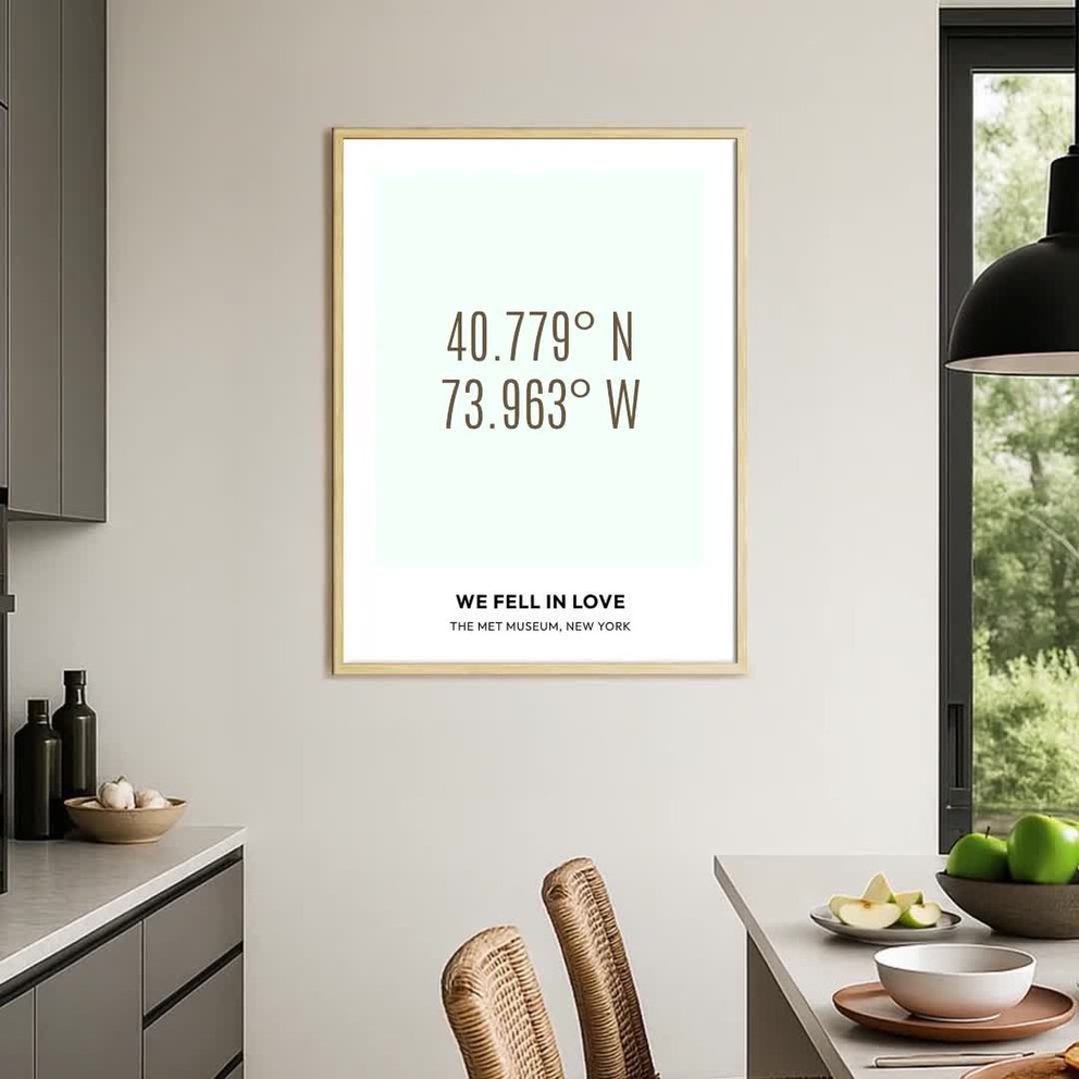 Our Where We Fell in Love Poster - Coordinates is available in the always ideal Portrait orientation, or it can be fully customized to your liking. Perfect for any space, this work comes in various size options and finishing materials. In fact, your Where We Fell in Love Poster - Coordinates will have a classic, gallery-quality look when you choose from Matte Poster, Metal Frame, Canvas, Wood Print, and more. Don't hesitate! Give your walls the makeover they deserve!
