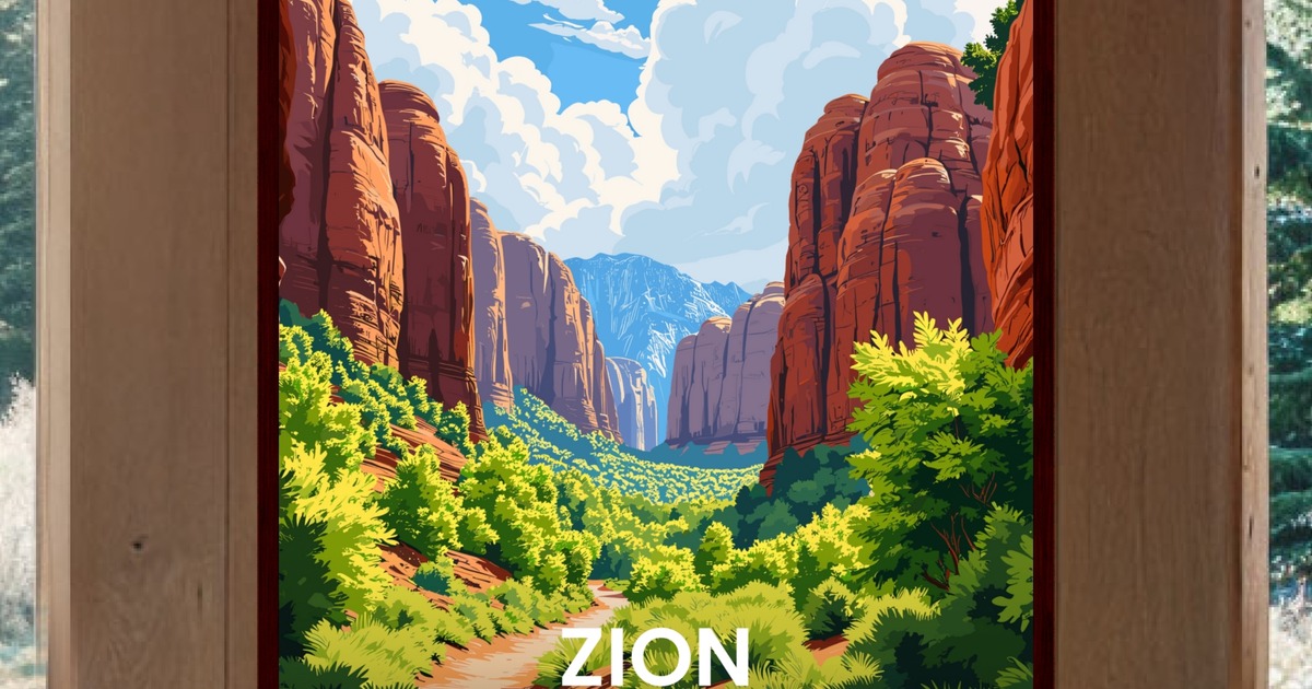 Add a touch of class to your home or office with a Zion National Park Travel Print - Vintage Travel Art Poster, and transform beautiful artwork into a conversation starter in any space. With a Zion National Park Travel Print - Vintage Travel Art Poster from our incredible Vintage National Park Travel Art collection, you're sure to turn heads. As part of our best-selling line of Travel Art Prints, this piece is a favorite among Travel enthusiasts and an excellent choice for Gifts for Frequent Travelers or Gifts for Nature & Outdoor Lovers.