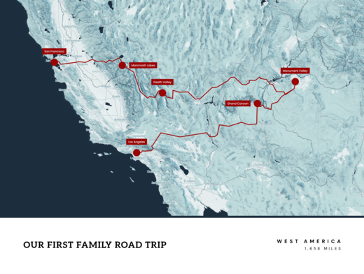 Road Trip Routes: Every road trip is a unique journey, filled with laughter, discovery, and shared moments. Immortalize the twists and turns of your favorite road trips on a custom map, creating a visual reminder of the scenic routes, hidden gems, and spontaneous detours that made each trip unforgettable.