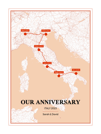 The platform's intuitive tools and customization options allow you to add your personal touch, ensuring that your Route Map Poster is an evocative and meaningful reflection of your explorative spirit.